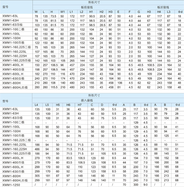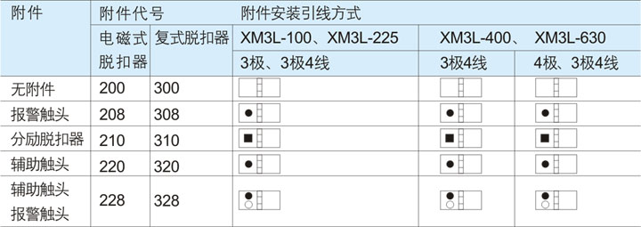 ◇ 例如:訂購XMM1-225L,180A,四極,帶欠壓和輔助功能,數量10臺訂單表示為:XMM1-225L/4370,180A,10臺。