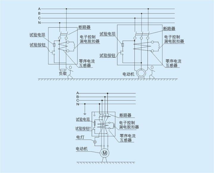 當被保護電路中有漏電或人身觸電時,只要剩余電流達到整定動作電流值,零序互感器的二次繞組的輸出信號就觸發可控硅導通,并通過漏電脫扣器使漏電斷路器動作,從而切斷電源起到漏電和觸電保護作用。